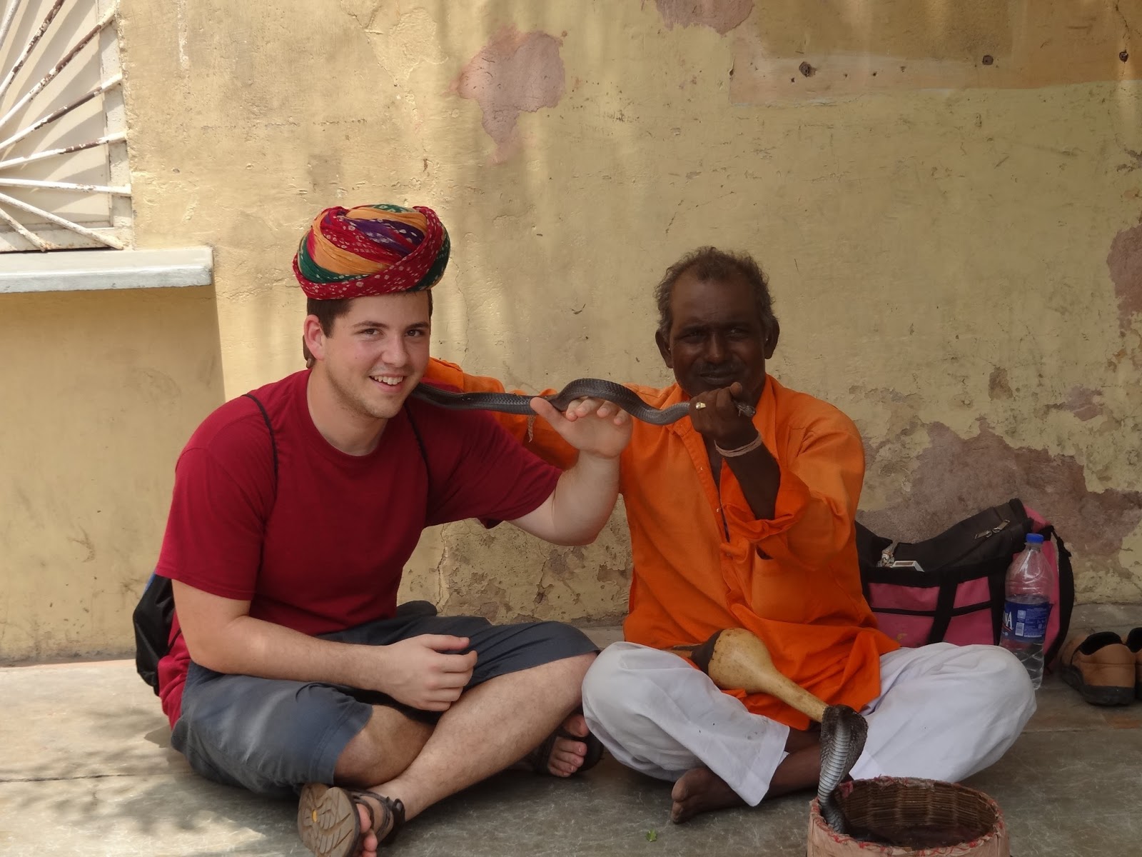 Justin with a snake charmer.